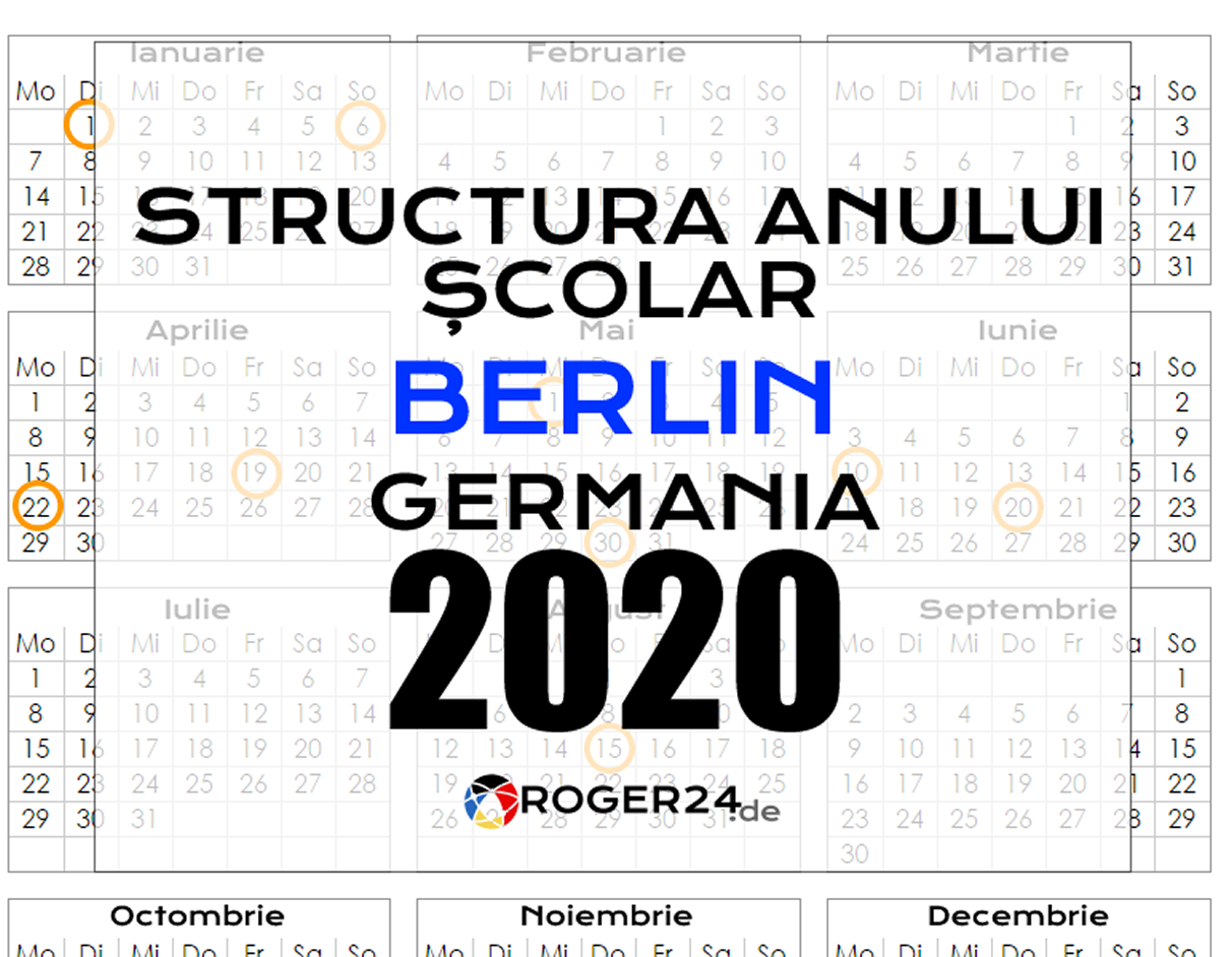 În Berlin, ca și în celelalte landuri, structura anului școlar diferă. Berlin, este capitala Germaniei, dar și un land în interiorul landului Brandenburg. În acest articol puteți găsi calendarul specific Berlinului, precum și pentru celelalte 15 landuri (din totalul de 16) - aici.